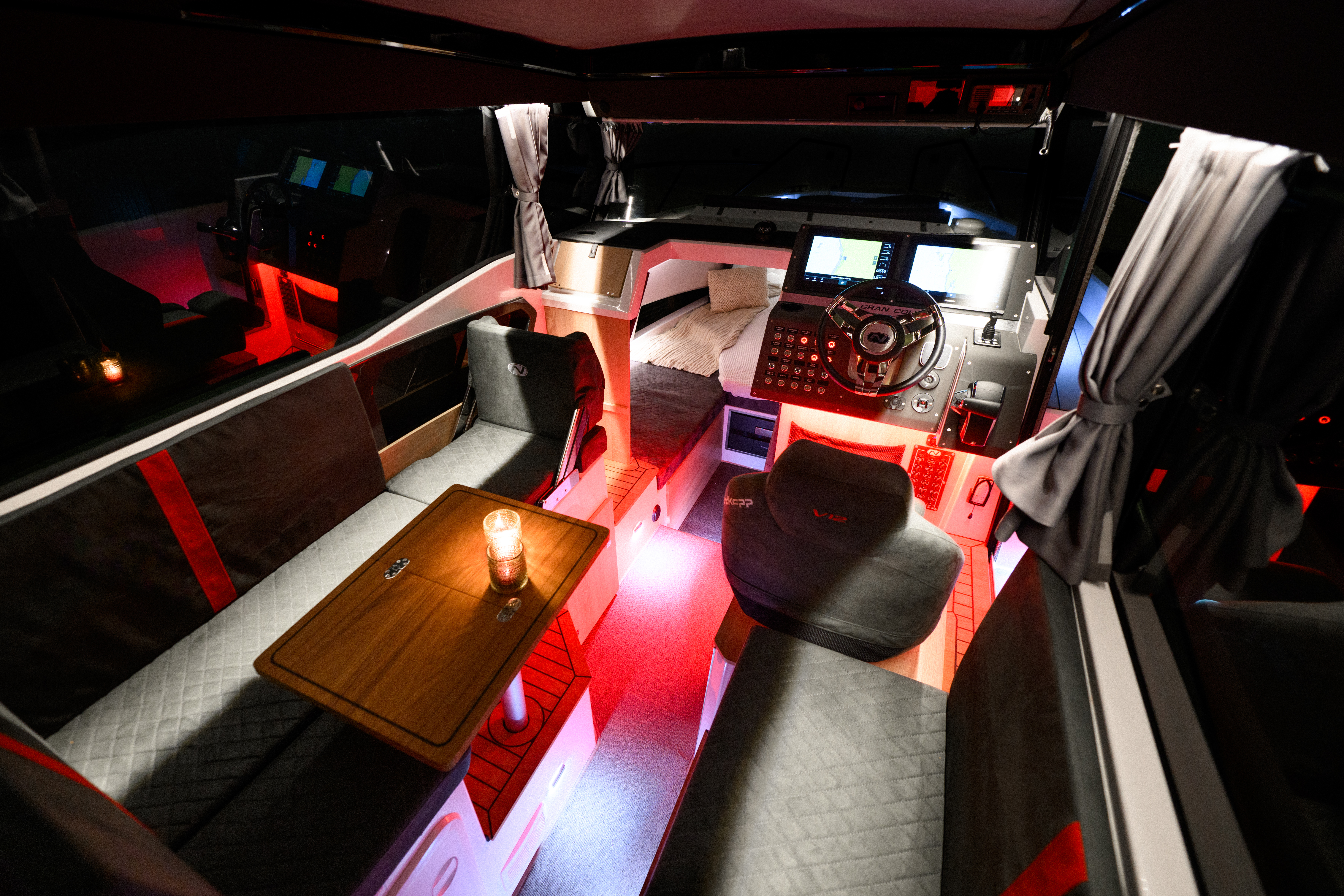 Da datteren min sto opp, hadde jeg allerede drukket opp den første koppen kaffe, så vi var alle spente og våknet tidlig. Vi spiste en lett frokost, satte oss i bilen og satte kursen mot kaien. På denne årstiden står ikke solen opp før tidlig på ettermiddagen, så vi starter feiringen i mørket, noe som er den perfekte rammen for å nyte stemningen rundt det første adventsstaken (i desember tenner vi ett adventslys hver søndag frem til jul). Idet vi gikk inn i styrhuset på 905 V12, skrudde jeg opp Webasto-varmeren for å gjøre det lunt og koselig, i kontrast til det kjølige været utenfor. Hun koste seg med pepperkaker og varm kakao i sofaen mens jeg gjorde oss klare til å forlate kaien.
